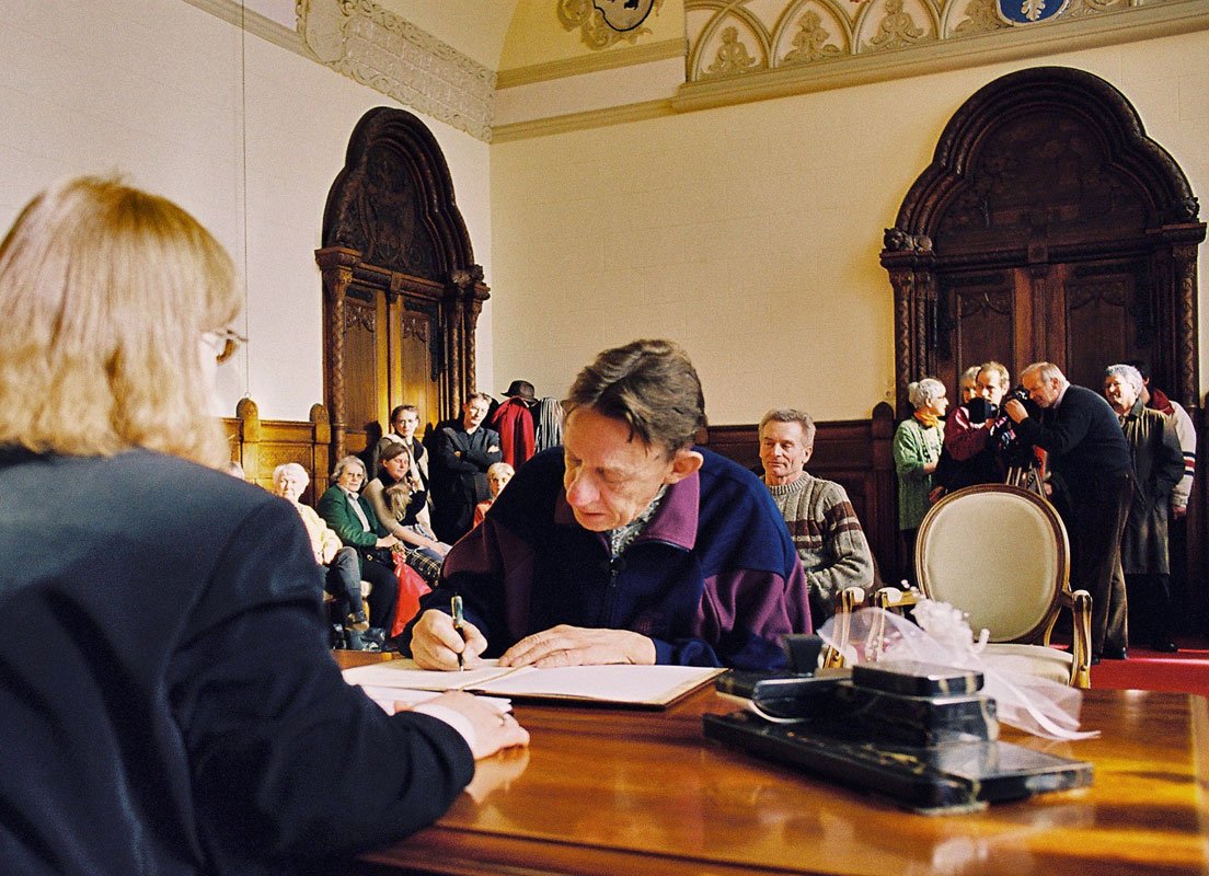 Reimar Lenz und Hans Ingebrand vor dem Standesamt,