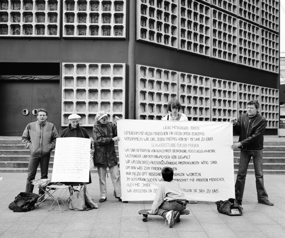Mahnwache vor der Berliner Gedächtniskirche. Links: Reimar Lenz. Rechts außen: Hans Ingebrand,